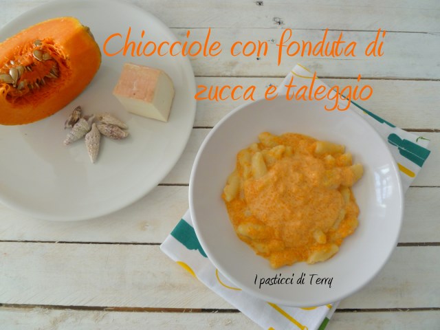 Quanto mi piace la zucca … l’adoro perché la trovo molto versatile, buona con il salato ma anche con il dolce. La puoi usare per fare un pane, sai come diventa arancione la mollica? Ne ho fatto uno sorprendente, presto lo pubblicherò. Puoi farci degli gnocchi, della pasta fresca, puoi usarla per un ripieno, per un risotto ma anche per preparare un dolce. Si può preparare un bel ciambellone o una torta o dei dolcetti, hai presente la Torta di carote? Ecco puoi sostituire la zucca alla carota, vengono buonissimi! QUA trovi tantissime ricette, da me già pubblicate, con questo versatile e buonissimo ortaggio. Oggi invece voglio presentarti una buonissima pasta, quando preparavo le forme, mi sono venute in mente delle Chioccioline di mare, hai presente? Dopo te le mostro in fotografia. E la zucca dirai tu, cosa c’entra? Con la zucca ho preparato una crema, con del taleggio. Golosissima! Avevo visto qualcosa del genere nel blog della Lilli e ho voluto prepararla. Ecco qua le mie Chioccioline di pasta fresca con fonduta di zucca e taleggio.