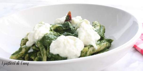 Ora salate l’acqua e cuocete i Cicatelli. Quando saranno pronti, scolarli direttamente nella padella, insieme alla verdura. Insaporire velocemente e servire ben caldo nei piatti. Sistemate qualche cucchiaiata di burrata nei piatti … quella che sarà rimasta dopo la pesata e non avrete già mangiato a cucchiaiate, intanto che cucinate …