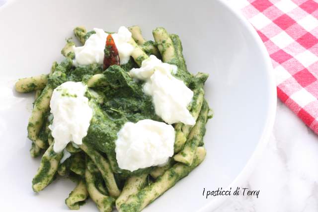 Ora salate l’acqua e cuocete i Cicatelli. Quando saranno pronti, scolarli direttamente nella padella, insieme alla verdura. Insaporire velocemente e servire ben caldo nei piatti. Sistemate qualche cucchiaiata di burrata nei piatti … quella che sarà rimasta dopo la pesata e non avrete già mangiato a cucchiaiate, intanto che cucinate …