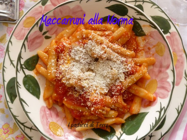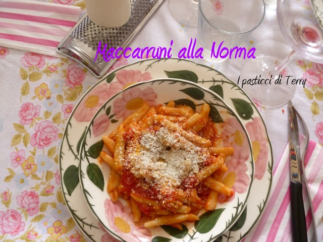 Questo formato di pasta ha diversi nomi, a seconda della regione di origine. Visto che il piatto è siciliano, l’ho chiamato Maccarruni. Forse gli originali Maccarruni, sono leggermente più lunghi ma con questo condimento, non ce la vedevo della pasta lunga. Bando alle ciance, che ne ho già fatte troppe, ecco a voi i Maccarruni alla Norma.