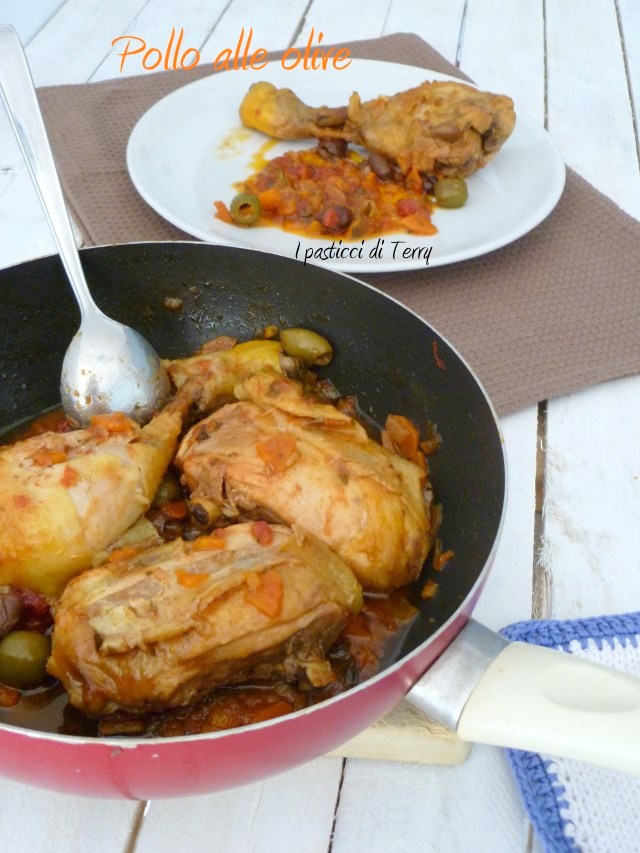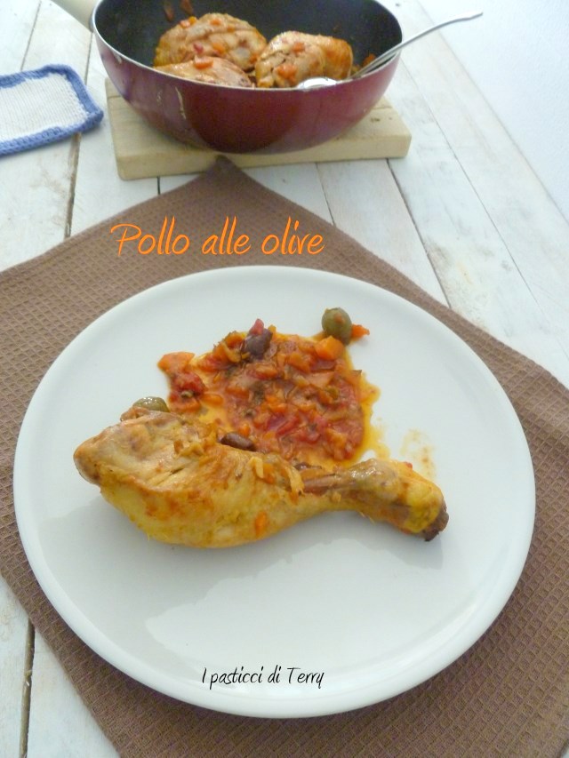 E’ una ricetta semplice, con un misto di verdure da soffritto e l’aggiunta di olive, quelle verdi, piccoline, taggiasche. In questo modo faccio anche il coniglio, raramente. In inverno si può accompagnare da una bella polenta morbida e profumata. Se non amate la polenta va benissimo una bella scarpetta con del buon pane casereccio. Se non avete tempo potete prepararlo anche il giorno prima, scaldato è ancora più buono. Pollo alle olive.