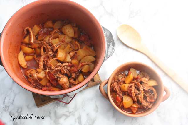 3. Cresciuta vicino al mare e avendo uno zio pescivendolo, non potevo non amare il pesce, in tutte le sue forme e in qualsiasi modo mi si presentasse. Il polpo è tra i miei preferiti, declinato in tante varianti e in tante varianti ancora da provare. L’idea di farlo con le patate è un classico, ma accompagnarlo anche a pomodorini secchi è quel tocco in più che lo rende speciale. Mi sa che oltre Francesca, ci sarò anche io seduta a tavola con te 🙂 Buon inizio settimana, Terry :*