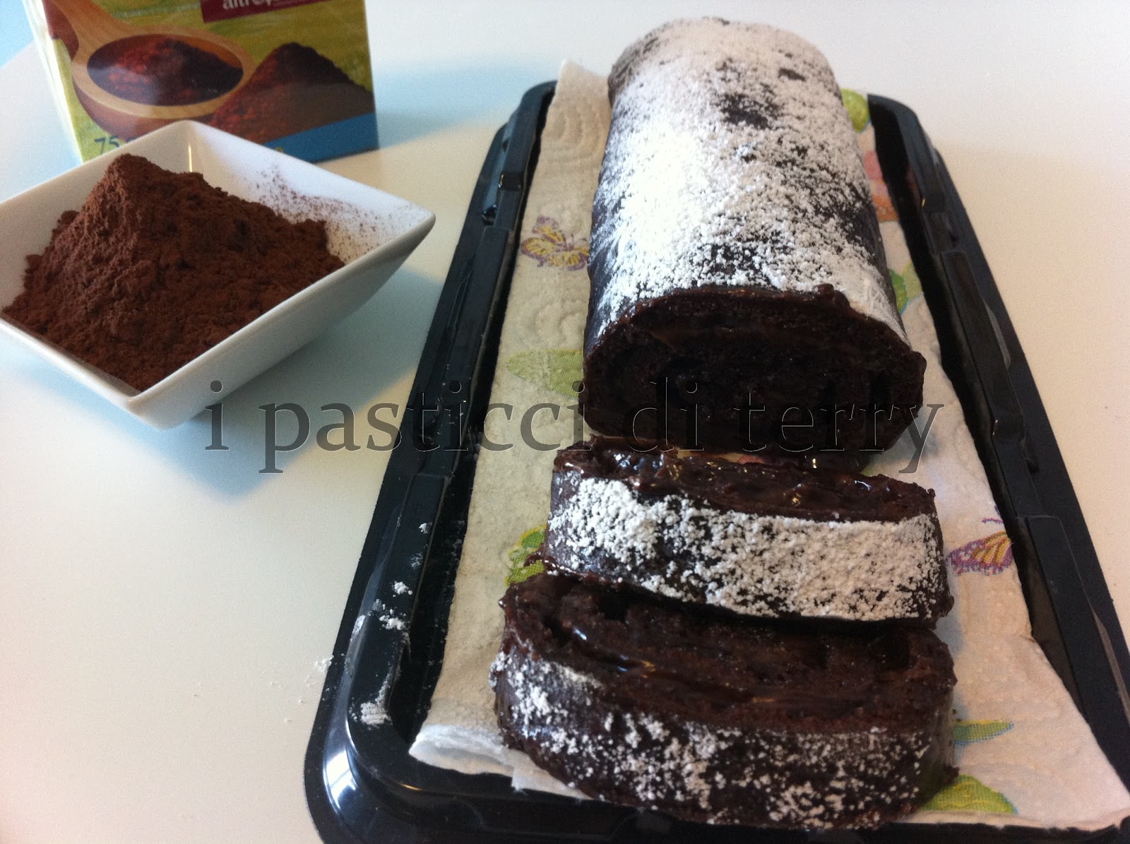Appena sfornato l’ho capovolto su un altro foglio di carta forno, ho staccato quella usata per cucinare e l’ho avvolta su se stessa, carta compresa. Appena intiepidito, l’ho aperto di nuovo e spalmato di nutella. Qui fate voi, secondo quanta vi piace … Riavvolto di nuovo su se stesso e fatto raffreddare completamente. Un vera “porcata” da golosi cronici, quali sono anche io!! :-))