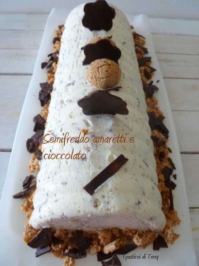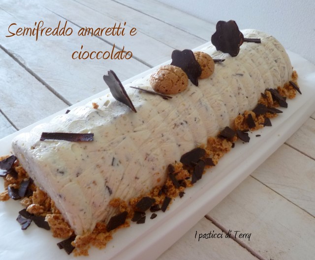 Devo dire che in estate un bel Semifreddo è il dolce ideale, si mangia sempre volentieri. Poi questo ha una base al sapore prevalente di panna e quindi piace a grandi e bambini. Il gusto dell’amaretto e del cioccolato lo rende goloso e piacevole. Se non hai ancora guardato nella mia sezione Gelati e semifreddi, ti consiglio di farlo. Cliccando QUI troverai diverse proposte. Ora ti lascio la ricetta Semifreddo amaretti e cioccolato.