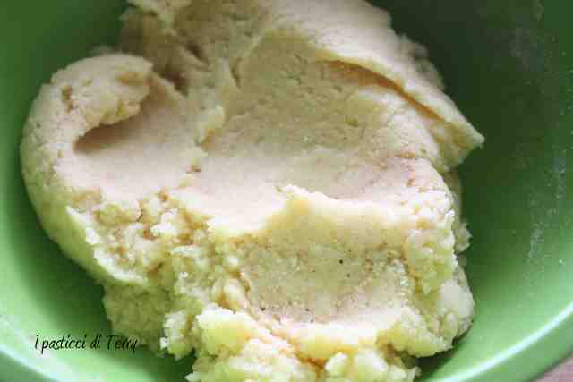 Passarle al passa patate, aggiungere un uovo intero, il pecorino, sale, pepe e noce moscata. Impastare bene con un cucchiaio e solo se occorre aggiungere del pan grattato. Deve venire un composto morbido ma non appiccicoso.