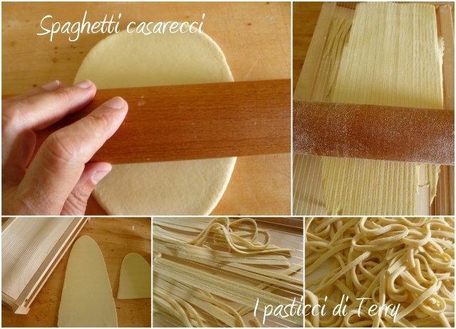 Prima di tutto preparare gli Spaghetti casarecci con la chitarra. Se non avete la chitarra o non vi piace fare la pasta in casa, vanno bene anche dei semplici spaghetti industriali
