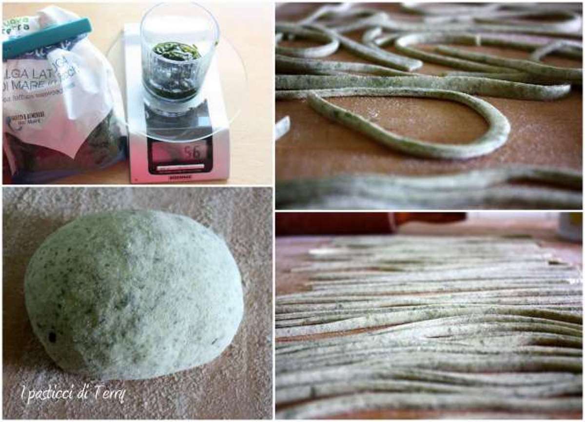 Ma daiiiii, un genio del male addirittura ahaahahhhhah. Ha un colore meno intenso della pasta con gli spinaci ma un profumo di mare che non ti dico. No no, stendi un pochino a spessore, come ti piace e poi tagli con una rotella. Io ho usato quella della pizza, per intenderci.
