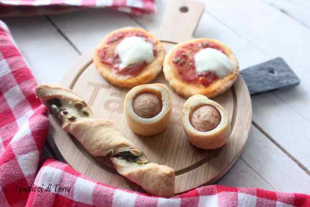 Nell’impasto dei miei Stuzzichini veloci alla ricotta c’è solo farina, burro e ricotta, una sorta di brisè arricchita dalla ricotta che dona quel gusto particolare alla base. Per la farcitura, spazio alla fantasia: classico pomodoro-mozzarella, acciughe, carciofini … potete fare dei rotolini con i wurstel, davvero mille sono le idee.