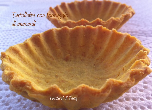 La base della Tartelletta è una sorta di frolla salata, con aggiunta di zafferano per rafforzare il colore. Chiaro che lo zafferano gli dona anche un certo sapore molto particolare. La farcitura ti avanzerà ma ti assicuro che spalmata su dei crostini, non durerà molto … Vuoi la ricetta? Ok, eccola. Tartellette al formaggio di anacardi.