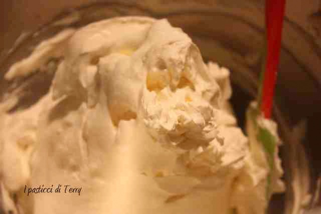 Io la sera prima metto in frigorifero anche la frusta per montare la camy cream, così è bella fredda quando mi serve. Quindi montare la panna ben fredda e metterla da parte. Montare anche il mascarpone e unire poi a filo il latte condensato. Montare bene fino a ottenere un composto ben sodo. Ora unire al composto di mascarpone la panna, facendo attenzione a non smontare tutto. Mettere in frigo, fino al momento di farcire il dolce.