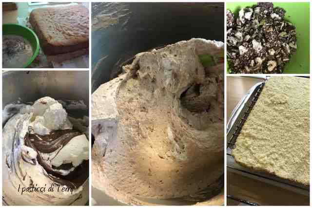 Potete preparare la base anche un giorno prima, io ho fatto così. Rivestire uno stampo da 34×28 (di quelli usa e getta, tipo cuki) di carta forno, prima bagnata e strizzata oppure imburrare e infarinare, come volete. Ora preparare l’impasto; per me molto semplice con il bimby: puntare 1 minuto a vel 5 e mettere nel boccale uova, zucchero e farina. Azionare e dopo 25 secondi inserire dal misurino l’acqua e il lievito, dopo altri 15 secondi il sale. Pronto! Infornare a 160° statico per circa 30/40 minuti. Fare la prova stecchino. Far raffreddare e, se non decorate la torta subito, chiuderla in un sacchetto grande per alimenti. Vedrete che si conserverà bello morbido.