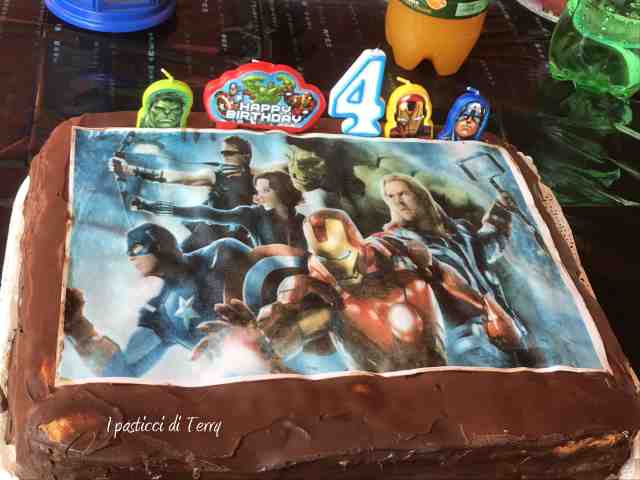 A lui piacciono i super eroi e quando gli ho chiesto che torta avrebbe voluto, mi ha detto: nonna voglio Super man, Spider man, Hulk … al cioccolato! Ehm … fare tutti i personaggi per me, era impensabile. Non sono così brava con la pasta di zucchero. Così mia figlia mia ha suggerito di prendere una bella cialda, con tutti i super eroi, così sarebbe stato contento. La torta naturalmente non è perfetta ma ormai lo sapete tutti, quanto io sia pasticciona. Christian però era molto contento e il suo sorriso e la sua gioia mi sono bastati.