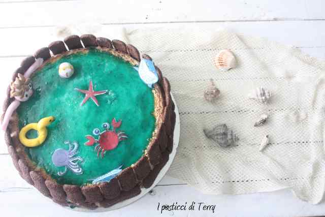 Che io sia una pasticciona si sa e infatti il nome del mio blog ne è la conferma. Questa torta ha mille difetti, è imprecisa, i bordi non sono perfetti, il mare ha un colore più sul verde che sull’azzurro, la staccionata non è bella dritta …