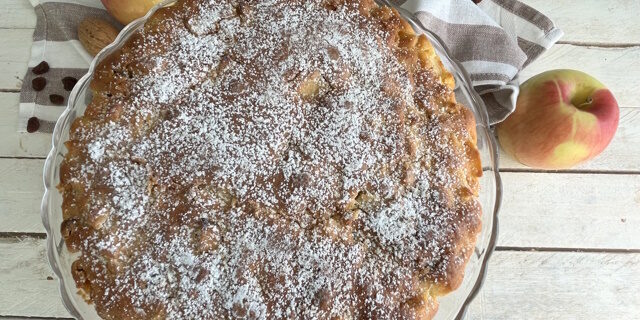 Credo che proverò questa torta. Al mio lui non piacciono le torte di mele, ma aggiungendo noci e uvetta…forse lo imbroglio, che ne dici?
