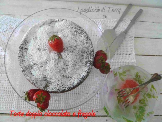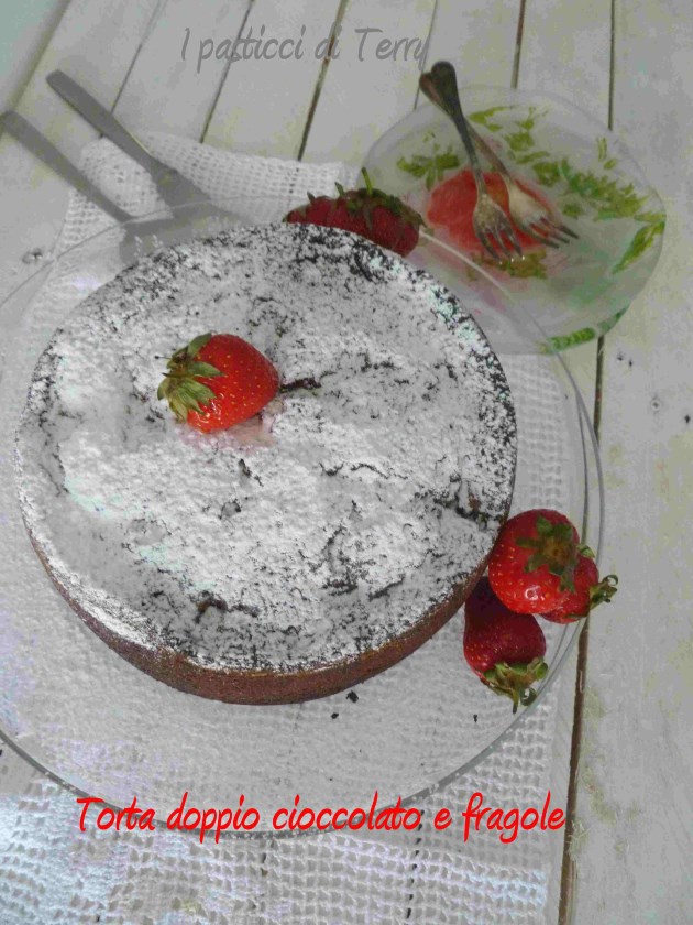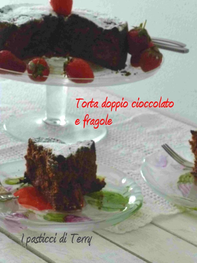 Come ti avevo promesso, ecco la prima ricetta con le fragole. Questa Torta è golosità allo stato puro! Con il cioccolato in polvere che colora l’impasto e dona quel profumo di cioccolato. Con quel cioccolato a pezzetti che, dove non si è sciolto, si sentono in mezzo ai denti … Le fragole, secondo la mia idea, dovevano spuntare da sopra ma invece la Torta è cresciuta, sovrastandole. La prossima volta proverò con un impasto più sostenuto, però così non avrò la scioglievolezza del mio impasto. Non so, tutto sommato mi va bene così, vederle solo al taglio. In mezzo a tutto quel cioccolato, si sono fuse e hanno cambiato colore anche loro ma il sapore lo sentirete tutto, parola mia. La provate? Poi ditemi se la provate, vi aspetto. Ora andiamo con la ricetta: ecco a voi la mia Torta doppio cioccolato e fragole.