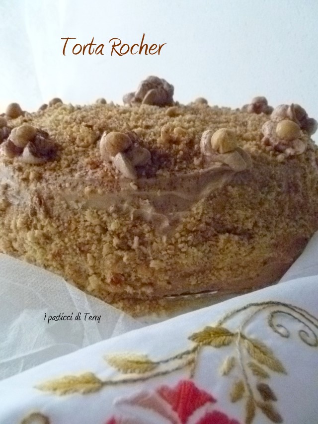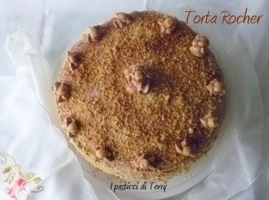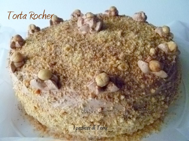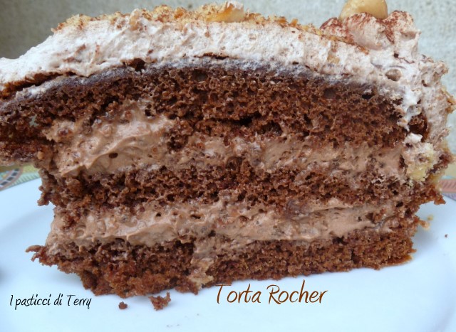 Ho fatto questo dolce, qualche tempo fa in occasione del compleanno di mio cognato, il marito di mia sorella. Volevo fare una torta golosa, di quelle morbide, con tanto cioccolato. Lui è un golosone e scegliendo questa Torta Rocher non ho sbagliato, è golosa al massimo. Io l’ho preparata il giorno prima, messa in frigo, così tutti i sapori della crema e della copertura, si sono amalgamati bene alla Torta. Di questa ricetta ce ne sono molte versioni nel web. Io stessa avevo utilizzato la Crema rocher in questa Torta che avevo postato QUI. Stavolta ho voluto usare della panna vegetale al posto della panna da cucina. L’ho leggermente montata, resa lucida e quindi unita alla crema di nocciole e alle briciole di wafer al cacao.