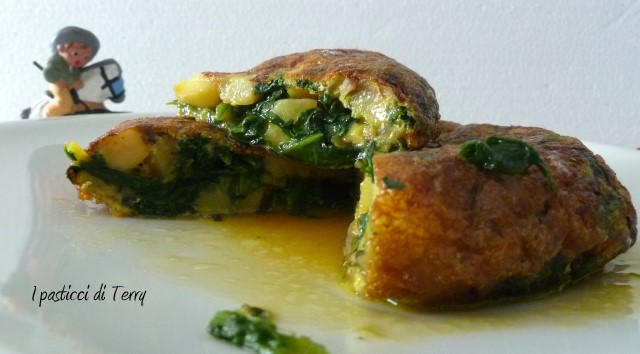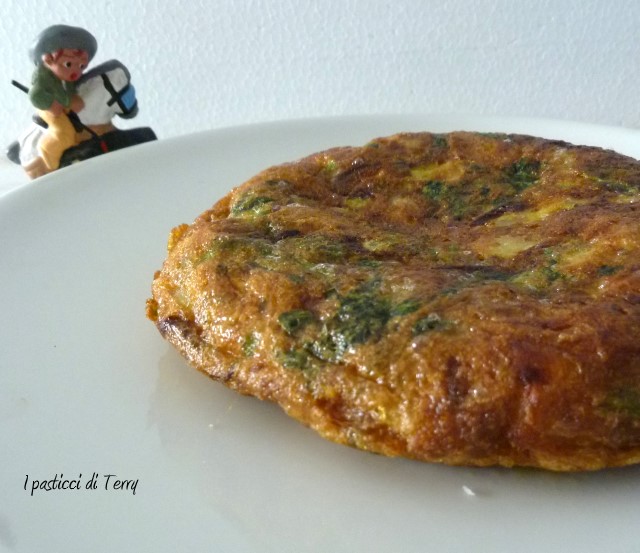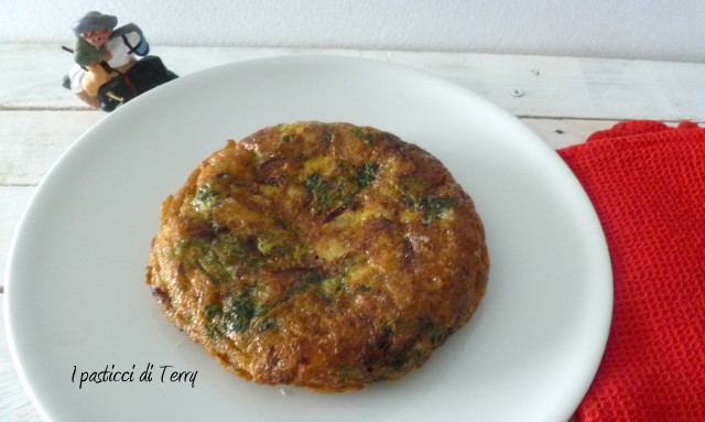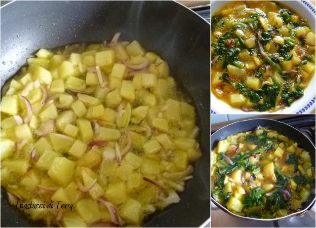 Io l’ho fatta con patate, cipolla e spinaci, semplicemente divina. E’ diversa dalle nostre frittate, resta più alta e più morbida. I miei spinaci forse non erano proprio ben strizzati e tagliandola ha perso un pochino di acqua ma fa niente, io ci ho fatto la scarpetta ed era fantastica! Me la sono mangiata tutta da sola ahahahah