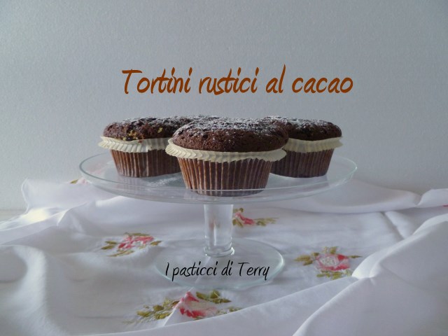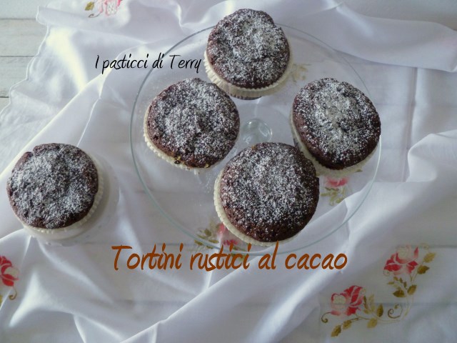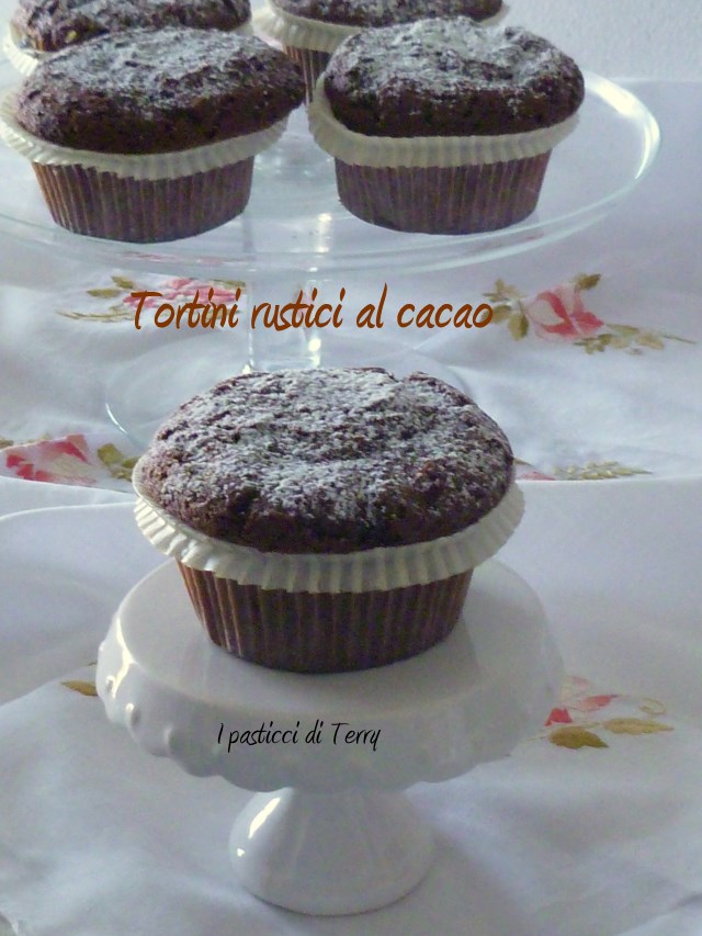 L’altro giorno ero rimasta senza scorte per la colazione, avevo dato fondo ai vari dolcetti, già porzionati, che avevo in freezer. Volevo un dolcetto leggero, goloso e veloce; eccolo. Questi Muffin o Tortine, visto la forma che mi è venuta, fanno proprio al caso. Ho usato delle farine prive di glutine, anche per finire un po’ di scorte che avevo in giro. Che vi devo dire? Buonissimi e veloci da fare. Ecco i miei Tortini rustici al cacao, velocissimiiiiii! Perchè rustici? Perchè sono fatti con farina di grano saraceno e amido di mais. Quindi sono adatti anche a chi è intollerante al glutine. La farina di grano saraceno regala quella sensazione di rustico, con i granelli che si sentono in bocca e l’amido di mais invece dona morbidezza e scioglievolezza. Il cacao invece soddisfa la mia golosità. Provateli e poi mi direte se non sono velocissimi e golosi.