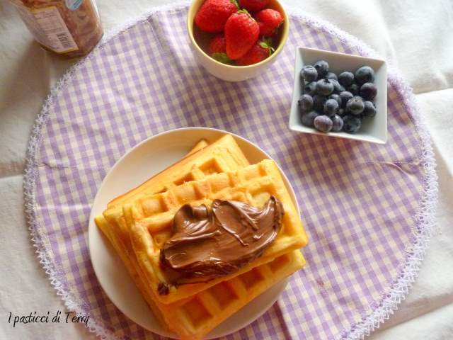 Sono ancora in tempo per la colazione mia cara Terry? Che io arrivo sempre in ritardo! Ultimamente si fa una fatica a dormire che neppure ti dico. Sarebbe bello svegliarsi con questi Waffle che mi portano indietro nel tempo. Quando trascorrevo i pomeriggi a prepararli per tutti i miei cuginetti. Bei ricordi…