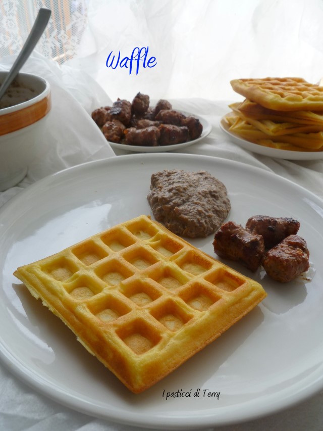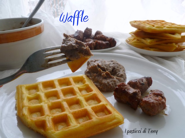 Era da tanto tempo che volevo provare a fare i Waffle. Di solito si mangiano accompagnati da qualcosa di dolce, tipo sciroppo d’acero o crema di nocciole … frutta, jogurt, insomma con fantasia e pochi ingredienti, ecco una colazione diversa. Io invece volevo servirli con qualcosa di salato e siccome per me la colazione è solo dolce, li ho preparati per un pranzo veloce e diverso dal solito. Non ti dico la faccia di mio marito quando glieli ho presentati in tavola, così serviti ahahahahahh. Insomma ho deciso che deve abituarsi a non trovare davanti la solita pastasciutta! Devo dire che ha mangiato tutto con gusto, l’unica cosa … ha accompagnato il tutto con del pane! Ma come si fa a mangiare il pane insieme ai Waffle? Mah … solo a lui vengono queste idee.